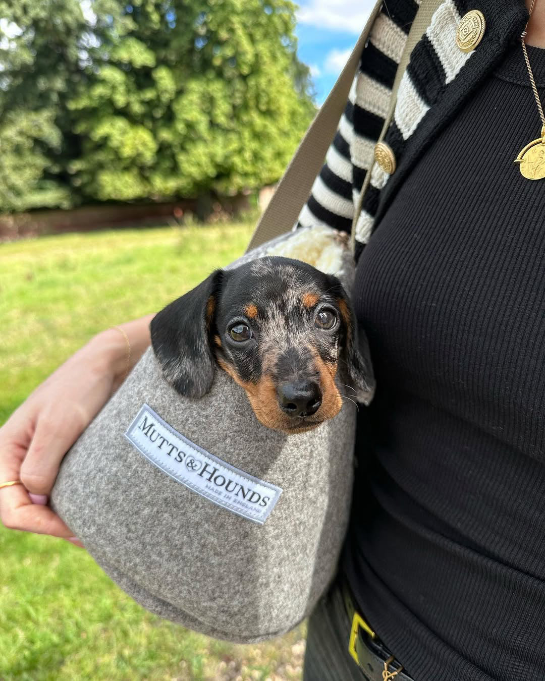Made from premium Yorkshire tweed with a cosy fleece interior, our Grey Tweed Dog Carrier is perfect for safely introducing your puppy to the world or for lazy days out and about. Available in two sizes, you can find the measurements on the product page.
